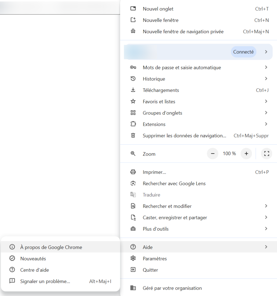 - Cliquer sur A propos de Google Chrome, Firefox.