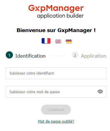 La connexion à une application se fera donc via une URL associée à l’application ainsi que vos informations de connexion, fournies par l’éditeur GxpManager.