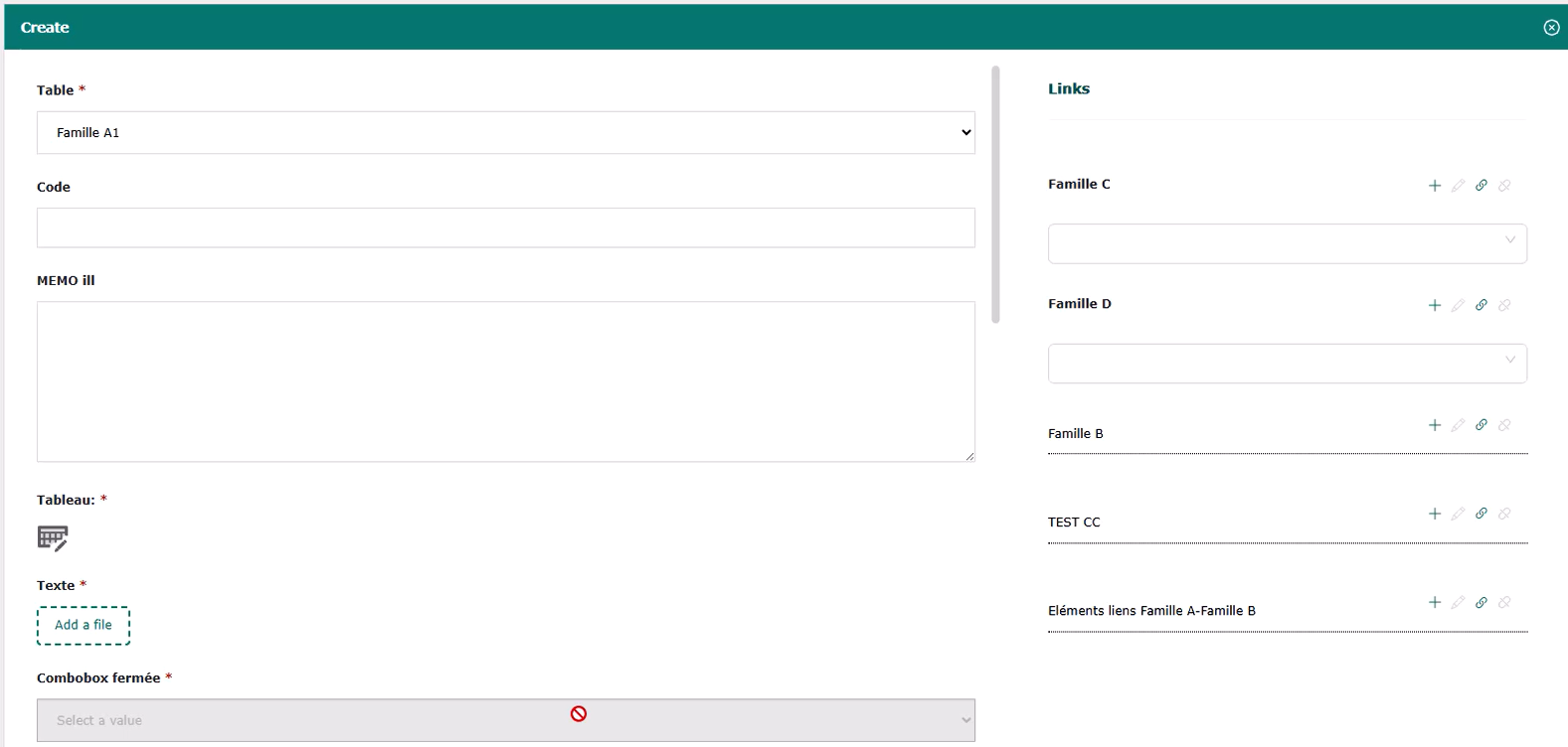 An input form is specific to each family, and is made up of fields of different types and linked tables.