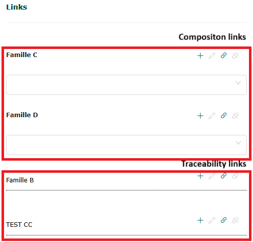 In the right-hand section of the form, there’s a “Links” category that lets you link and/or create records belonging to a linked table. We have 2 types of links.