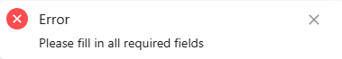If all mandatory fields are not completed, a message reminds the user to complete them.