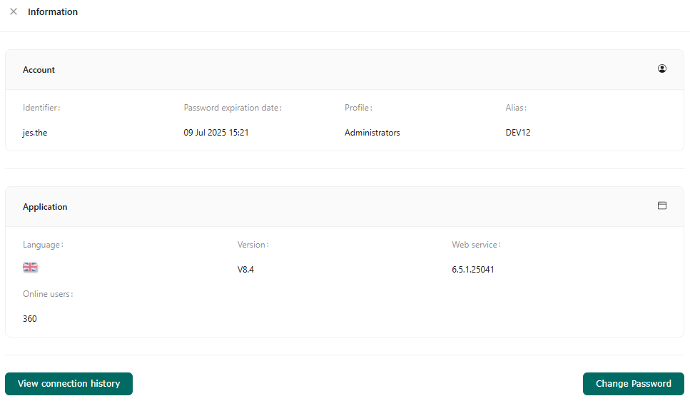 - View user account information: Username, Password expiry date, Profiles, Aliases