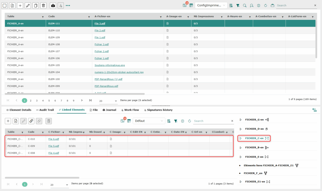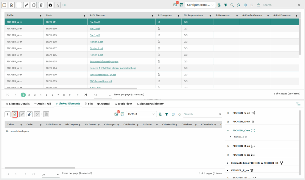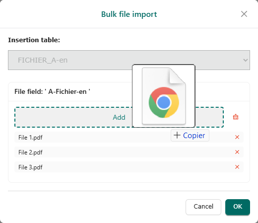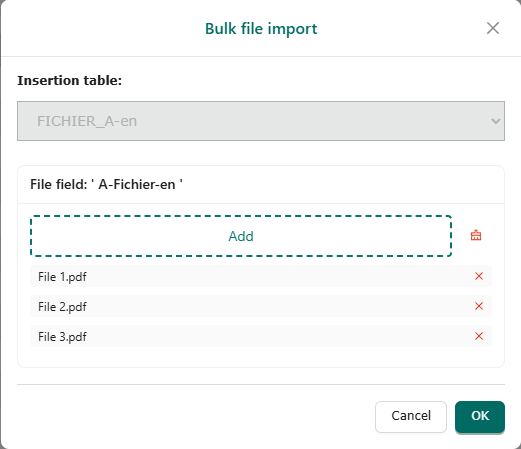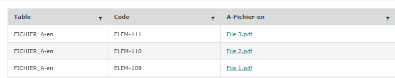 The creation steps are similar, except that in addition to creating elements containing the imported files, these files will also be linked to the selected table.
