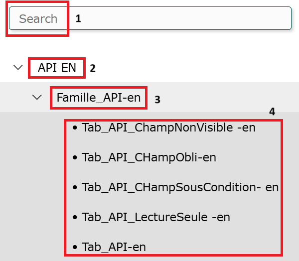 1. Search in menu: Group/family/table search field: you can search for a family, table or group by entering the first letters of the family or table in the “search” field at the top left of the screen.