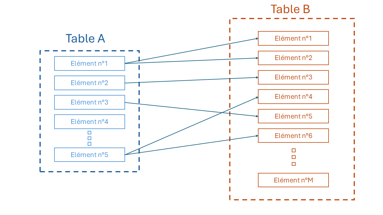 Les liens de composition sont utilisés pour créer une relation « un à plusieurs » éléments (1-N). Si la table « A » compose la table « B », des éléments de la table « A » peuvent être liés à plusieurs éléments de la table « B » avec des liens de composition. Mais chaque élément de la table « B » ne peut être lié qu’à un seul élément de la table « A ».