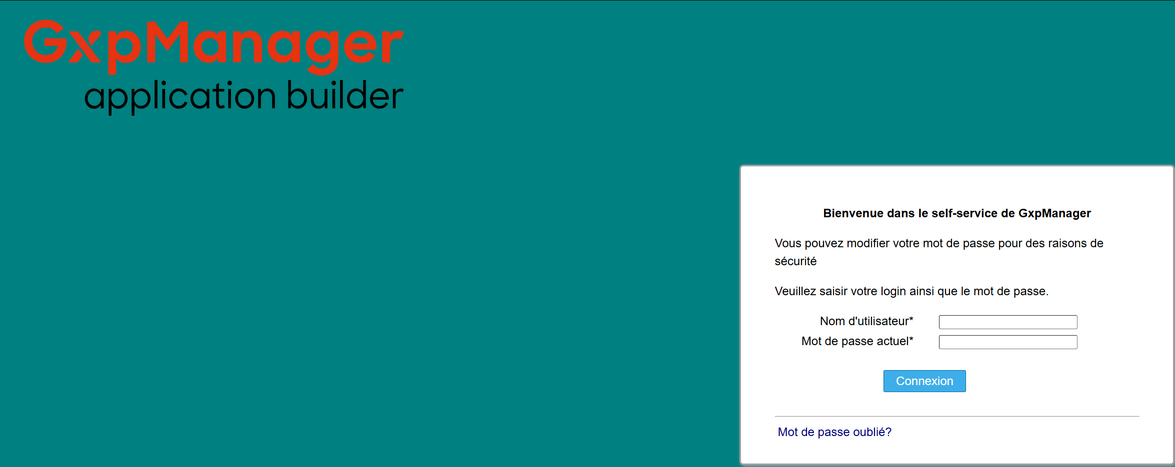 • Une nouvelle fenêtre dans le navigateur internet s’ouvre et permet de définir un nouveau mot de passe de connexion. Cette page permet de redéfinir le mot de passe associé au login (nom d’utilisateur) saisi, afin de pouvoir de nouveau se connecter à l’application.